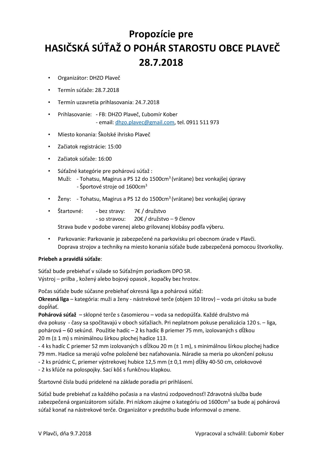 HASIČSKÁ SÚŤAŽ o pohár starostu obce Plaveč